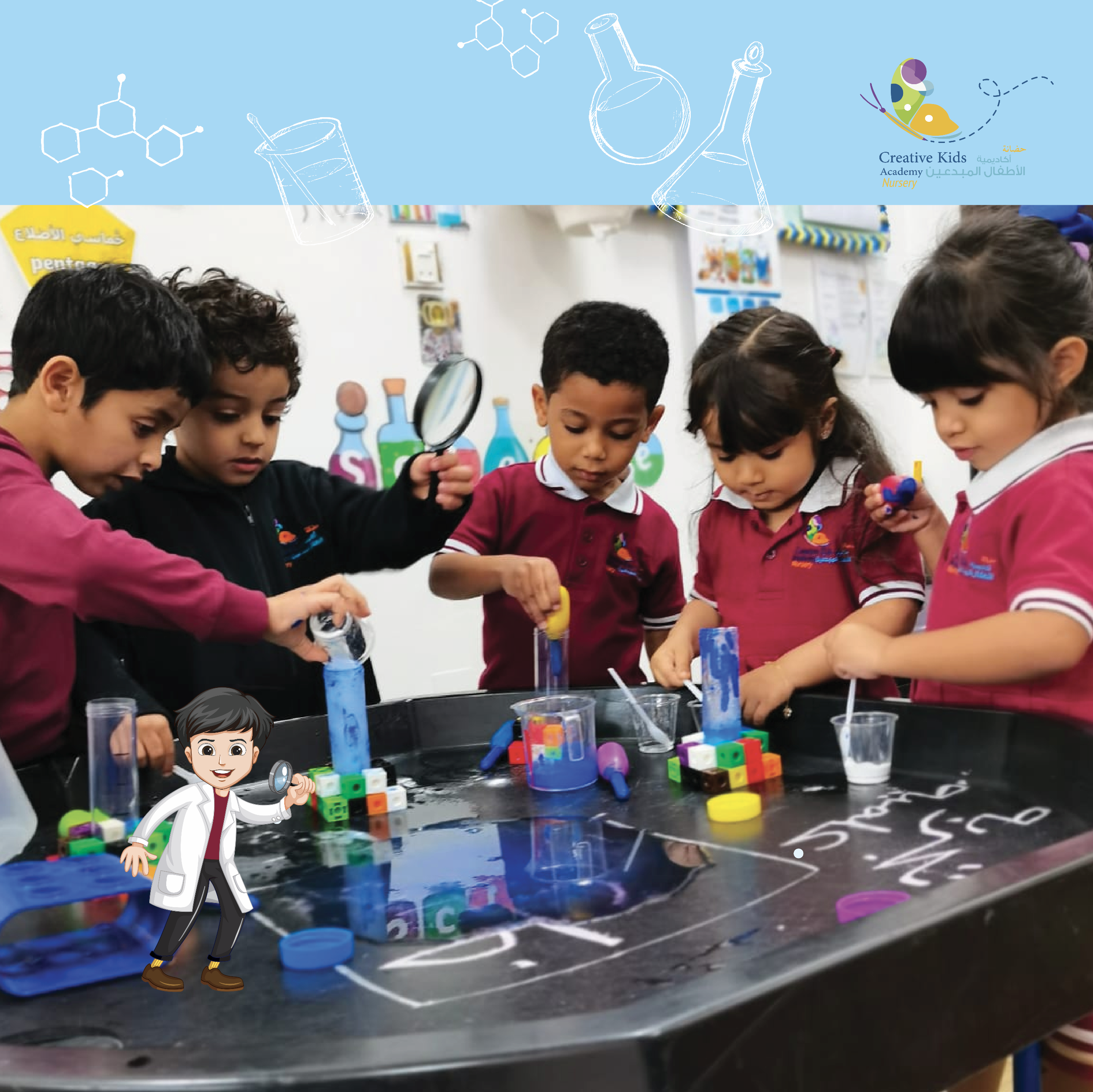 Our science classes in creative kids’ academy help in developing new concepts or ideas is an active process and usually begins with child-centered inquiry, which focuses on the asking of questions relevant to the child. We encourage children to ask questions and allow them to explore their curiosity.